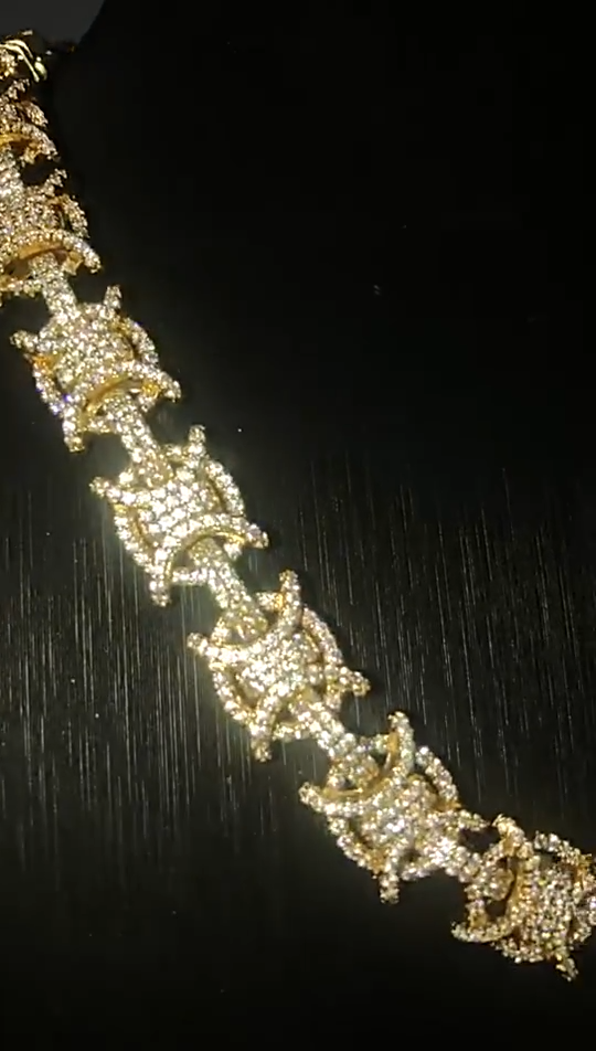 The iced byzantine bracelet ,one of the newest iced bracetet design available. Iced out hand set (never glued) cubic zirconla stones that shine like no other. Made with the highest quality the industry has to offer, this necklace is custom piece made to order. Available in 18k gold, silver, rose gold and a rose gold and silver mix, Additionaily numerous lengths.