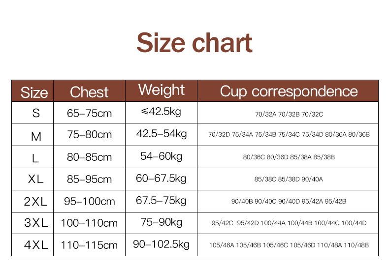 NOTE: If you normally wear a size C cup or more, order the next larger size for a more comfortable fit.
