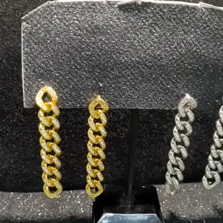 45*8mm Gold-plated Setting Zircon iced Out Cuban Link Chain Earrings