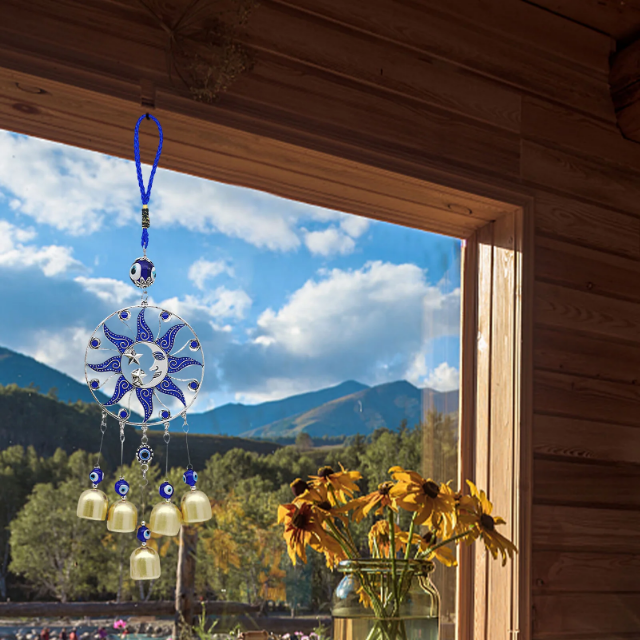 • Perfect Size: The full length of the blue eyes wind chime is about 30cm/11.8in, and the size of the sun diameter is about 8cm/3.2in.