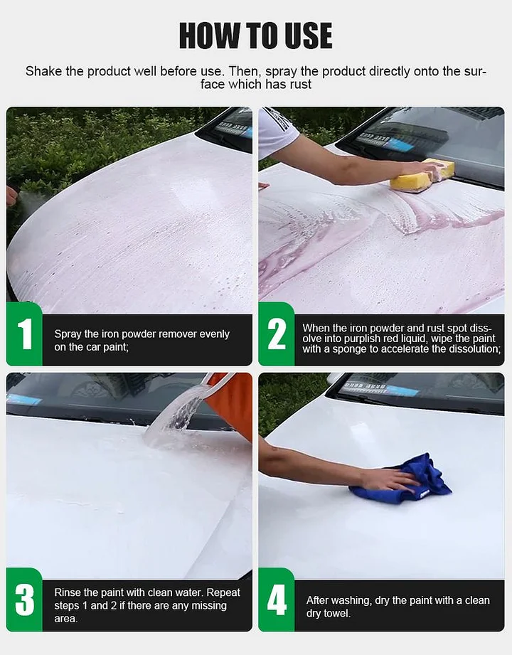Clean the rust fast, Usages are easy, Safe and environ mentally friendly, not hurt the car paint, Eco-friendly cleaner, rust remover and polish.