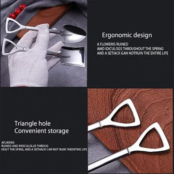 Cute a shovel-shaped design, Stainless steel mixing spoon, durable, elegant mirror polishing. It is also easy to maintain, dishwasher safe, and easy to clean.