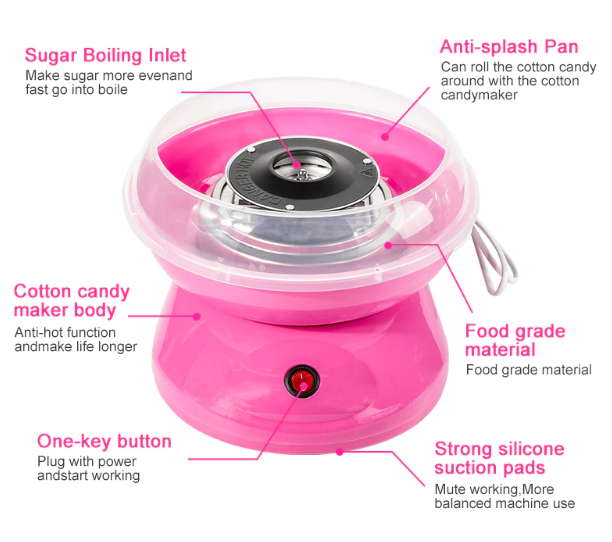 - Portable: The smaller size of this Cotton Candy Maker takes up little counter space, that has a carnival at home, and any time.