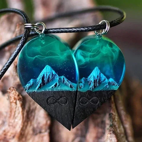 Resin pair heart pendant mountain: It is of extraordinary significance. Since ancient times, snowflakes are the purest. Its whiteness, like our pure love, symbolizes this beautiful meaning and brings us, beautiful love.