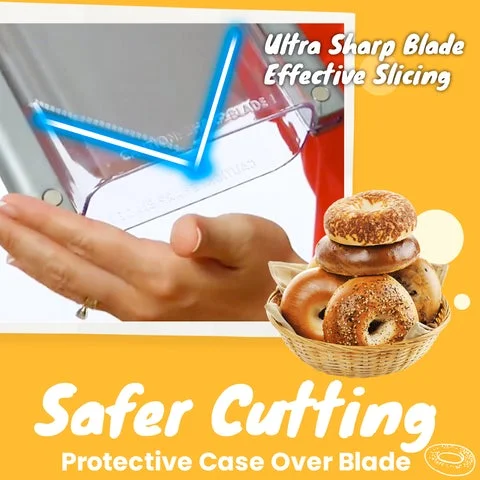 The bagel slicer features precision ground serrated cutting edges and a non-stick coated blade for smooth slicing and durability. With this bagel slicer, you will eliminate any uneven and messy cuts.